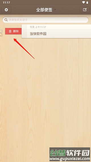 2、在单条便签上向右滑动,会显示删除该条记录的选项。