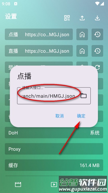 3、在弹出的窗口内输入接口地址,地址可在相关说明文档中获取;若某一播放源无效,可尝试切换其他源。