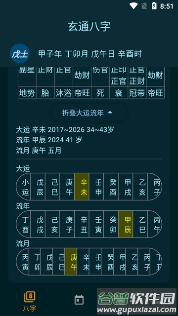 1.八字排盘:玄通八字允许自由切换排盘模式,仅需输入出生时间与性别,即可依据命理规则生成八字命盘。该功能兼顾初学者与爱好者需求,有助于深入理解八字结构与运势关联。