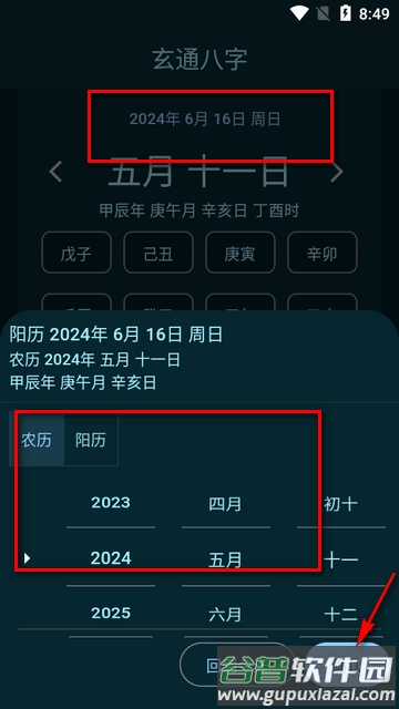 5.日期与命盘关联查看:选择任意日期后,可快速调阅已存八字档案与该日期的运势关系,帮助用户把握特定时间段的命理动向。