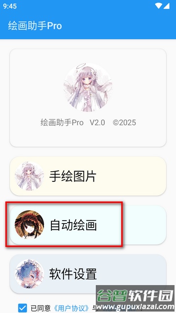 1、首先获取软件的最新版本并完成安装,打开应用后选择自动绘画功能入口。