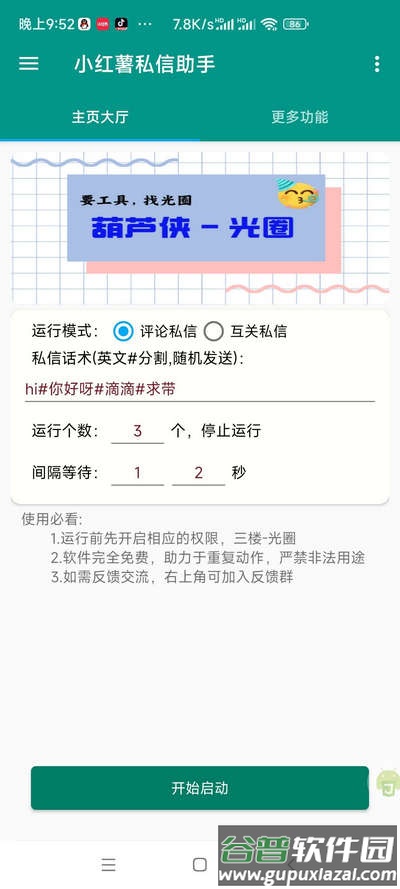 红薯私信助手是一款由开发者葫芦侠光圈专门为小红书平台设计的辅助工具。该软件能够帮助用户自动发送私信与评论,通过开启相应权限即可实现一键操作。它主要用于快速增加粉丝互动或主动联系潜在客户,为账号运营提供了一种自动化解决方案。
