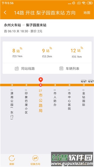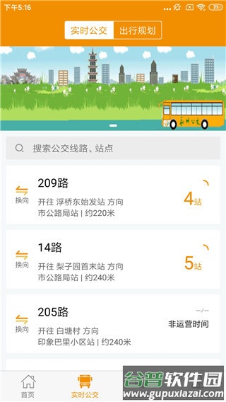 3、进入实时公交页面,查看实时运行车辆,获取该站点所有途经公交线路的信息。