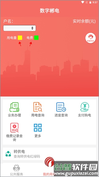 1、登录应用并绑定用电户号后,切换到【我的用电】模块,即可直接查看当前用电量与电费信息;
