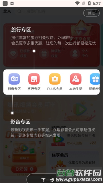 2、旅行与影音专区集中展示优惠信息,出行预订和娱乐观影需求都能在这里满足;