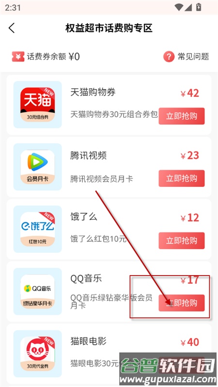 2、浏览并选择想要购买的权益商品,点击立即抢购按钮;