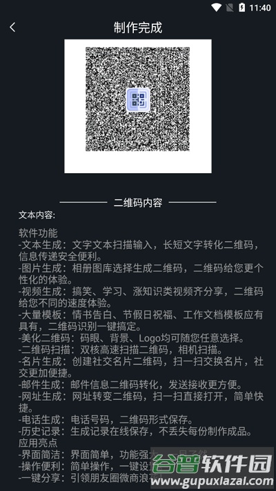 图片生成:可从相册或图库选择图片生成二维码,赋予展示更多个性色彩;