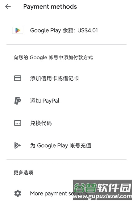 2 进入后可以看到当前余额,下方有添加付款方式的入口。