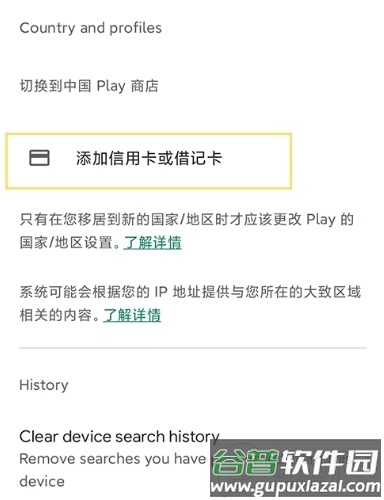 在“Country and profiles”栏目下,找到“切换到中国Play商店”的选项。