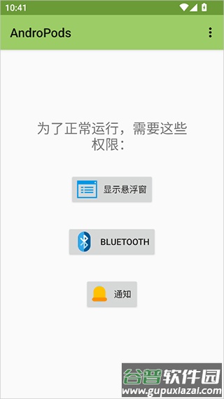 首次打开应用需授予必要权限,包括位置权限用于蓝牙搜索,以及悬浮窗权限用于显示弹窗;