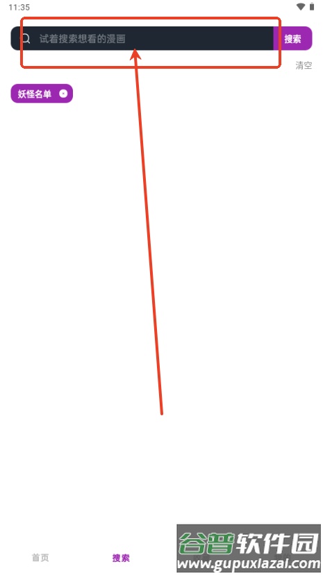 2、在搜索框中输入你想看的漫画名称或关键词;