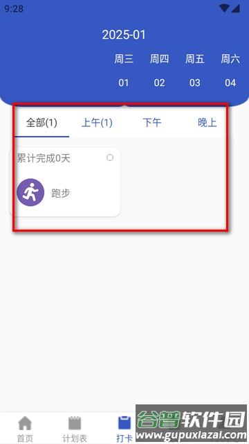 4、打卡界面允许用户自定义上午、下午及晚间需要完成的事项。