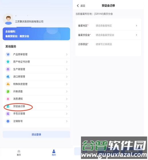 2. 选择待迁移的备案地及目标贸促会,并填写迁移原因。