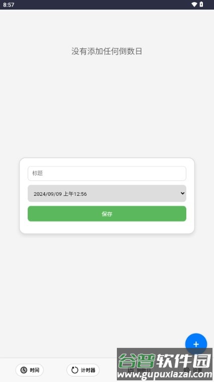 2、在倒数日界面点击右上角或下方的加号按钮;