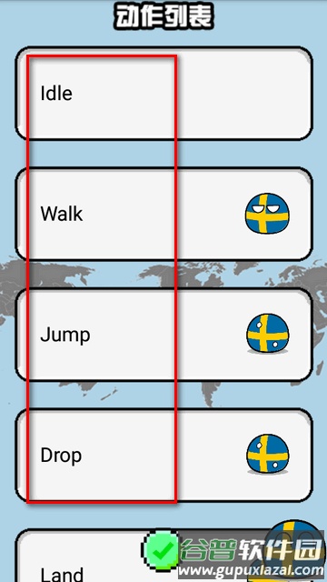 5、点击修改按钮进入动作列表,可对瑞典球的行为进行个性化设置。