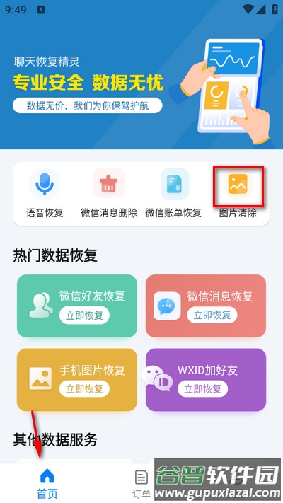 1、启动应用程序,在主页找到并选择图片清除功能。