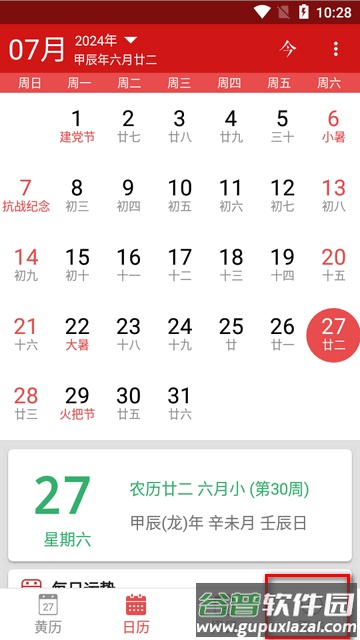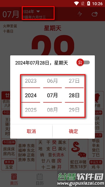 3、在屏幕上滑动,可以像翻阅纸质日历一样查看其他日期的老黄历内容。