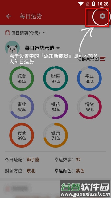3、点击设置按钮,可以添加家庭成员,以便同时查看多人的每日运势。