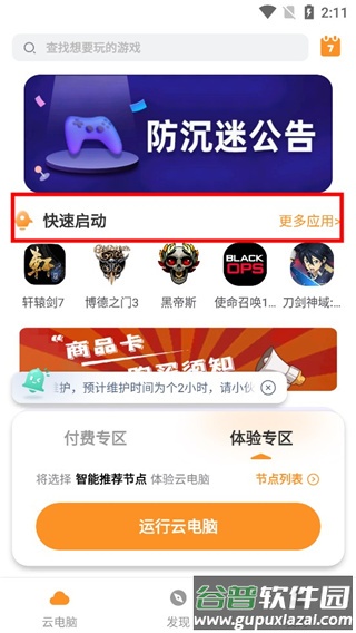 6、完成选择后点击运行云电脑,界面将显示排队弹窗,等待排队结束后即可快速启动游戏。
