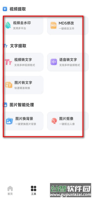 4、在工具页面中,可根据需求选择对应的功能进行操作。
