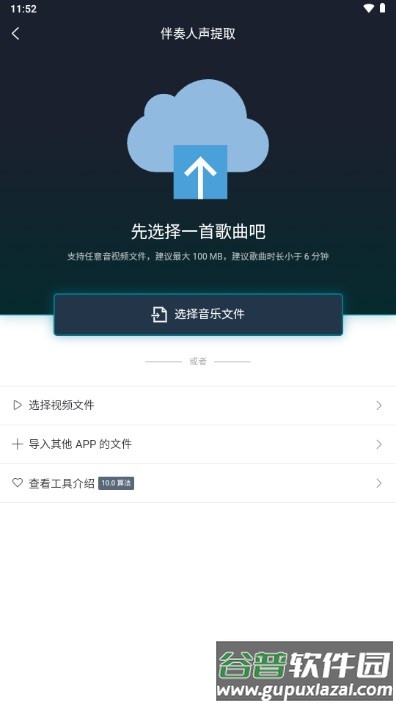 这款应用主要用于上传音频文件,并从中提取人声、伴奏或各种乐器音轨;