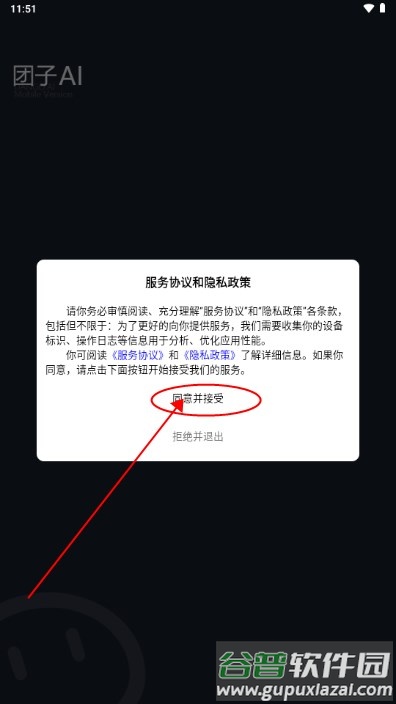 2、打开应用后,仔细阅读并同意用户隐私政策条款;