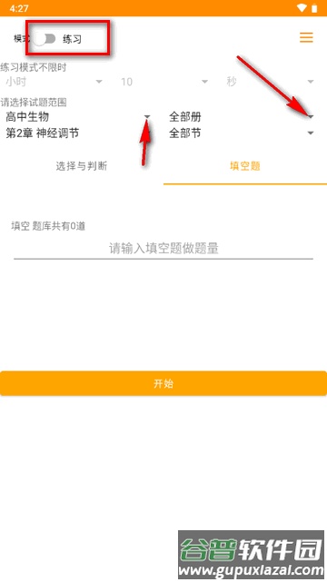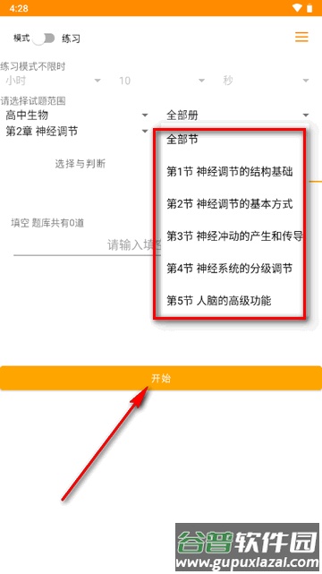 2、在练习前选择题目范围,包括章节、册、部节等多个层级。