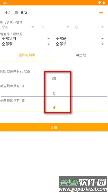 4、设置好本次想要练习的题目总数,点击开始按钮即可进入答题。