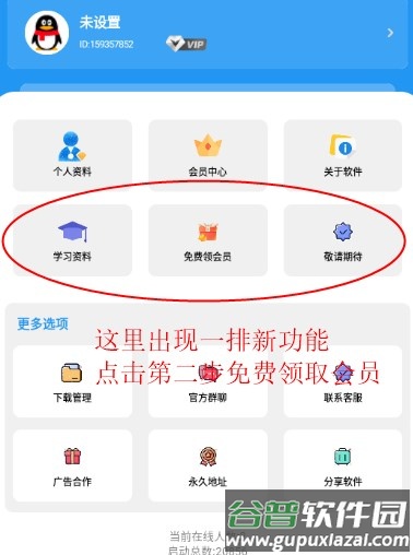 第二步,在菜单中找到并点击免费领取会员的选项;