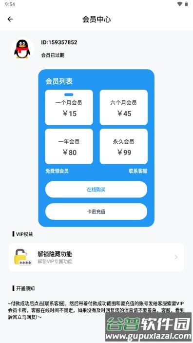 开通须知:付款成功后请点击联系客服,将付款截图与需要充值的账号一并发送给客服以获取VIP卡密;客服在线时间不固定,若未及时回复请耐心等待,看到消息后会尽快处理。