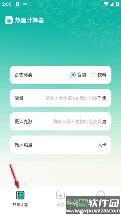 2、点击主界面左下角的热量计算功能,输入相关的数值即可完成计算。
