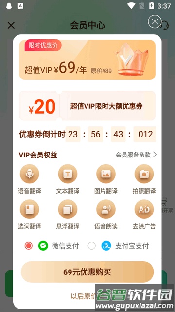 官方版本的全球翻译通应用需要付费使用。