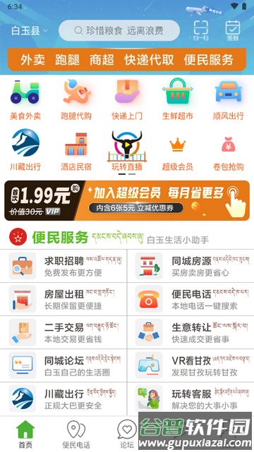 1、设有便民菜市功能,方便用户采购新鲜蔬菜与日常用品。