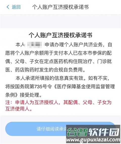 4、阅读“个人账户互济账户授权承诺书”内容,点击下一步,手动输入或一键填写申明内容,确认后继续下一步;