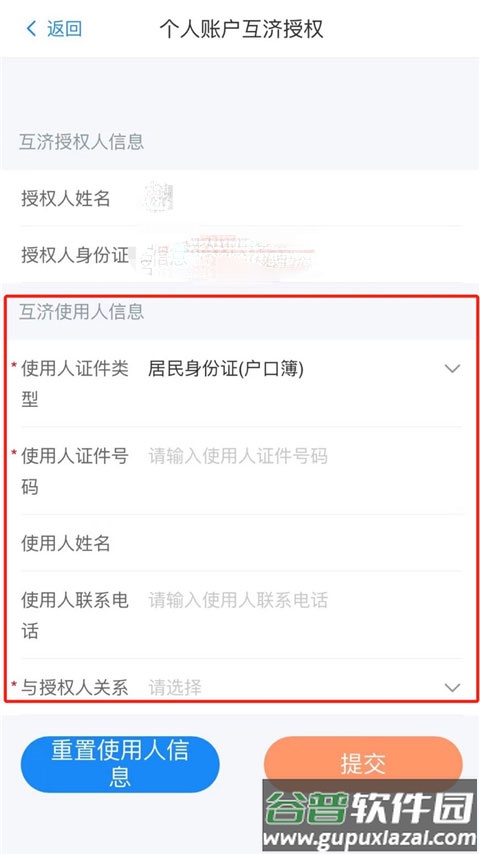 5、填写使用人的证件号码,可选填手机号,选择与授权人关系后提交绑定。