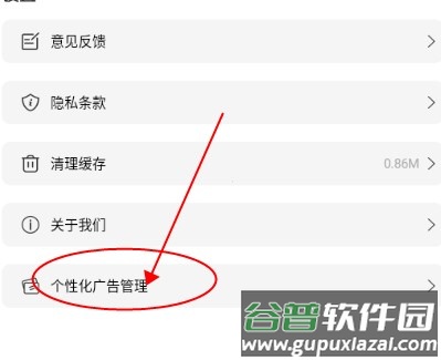 2. 在设置菜单中找到个性化广告推荐相关条目;