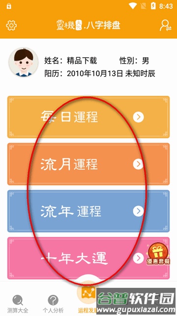 3. 运程发展:免费查看每日运程;提供流年流月运势查询;十年大运功能可预测长期的运势变化趋势。