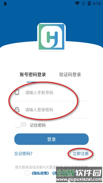 3、输入手机号与密码即可登录;若未注册,点击下方立即注册按钮。