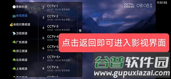 如果在手机端操作,轻点屏幕左侧即可显示出频道列表。