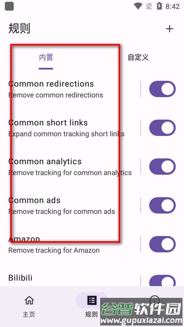 5、进入规则页面可查看所有内置规则,不需要的规则可直接关闭后方开关。