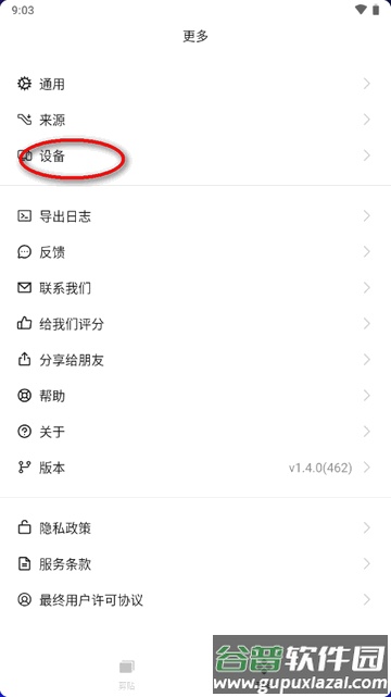 2、进入设置页面,选择“设备”功能。