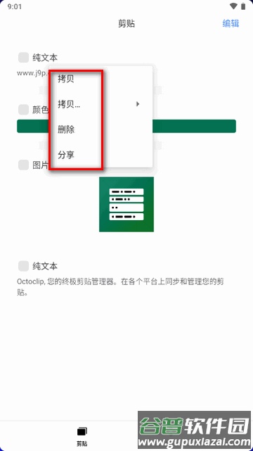 3、点击具体的剪贴记录,可执行拷贝、删除或分享等操作。