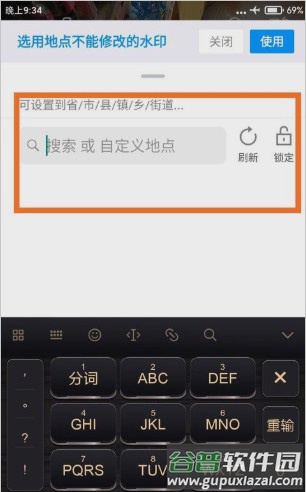 5. 最后点击拍摄页面的定位图标,手动输入希望显示的地点信息即可。