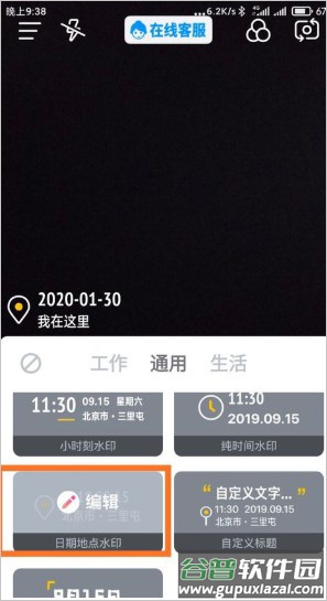 还包含执勤水印、经纬度水印、农历水印、宝宝成长记录水印等模板。