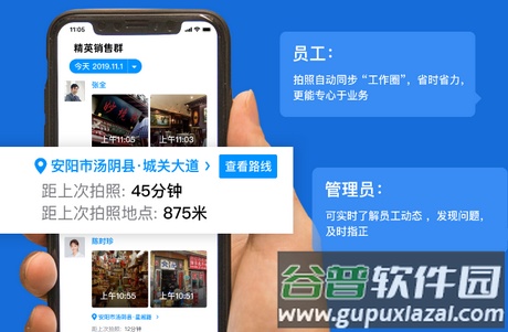 工作圈功能清晰展示员工拍照数量、时间间隔与位置变化,便于及时发现问题;