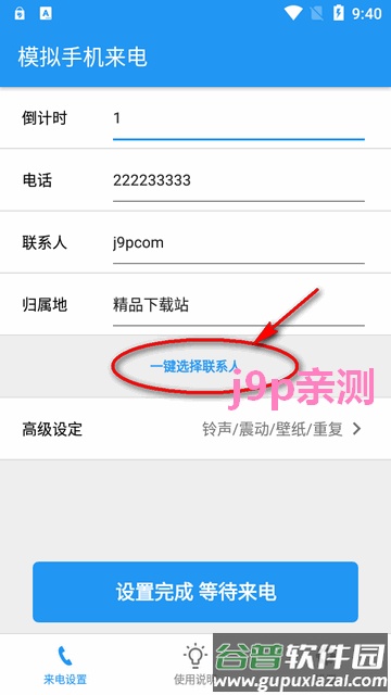 在软件界面点击一键选择联系人,可以直接从手机通讯录导入联系人来电信息。
