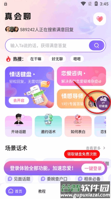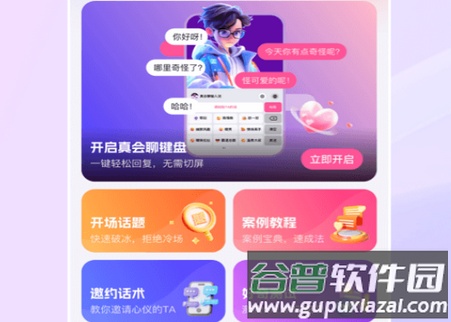1、软件内置情话键盘功能,能快速生成回复建议,帮助推进关系发展;