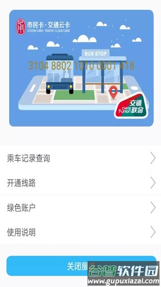 点击更多功能或直接进入“市民通・交通云卡”页面,可以进行详细管理;您可以查看乘车记录、已开通线路、绿色账户余额及相关使用说明,也可以选择关闭交通云卡服务。