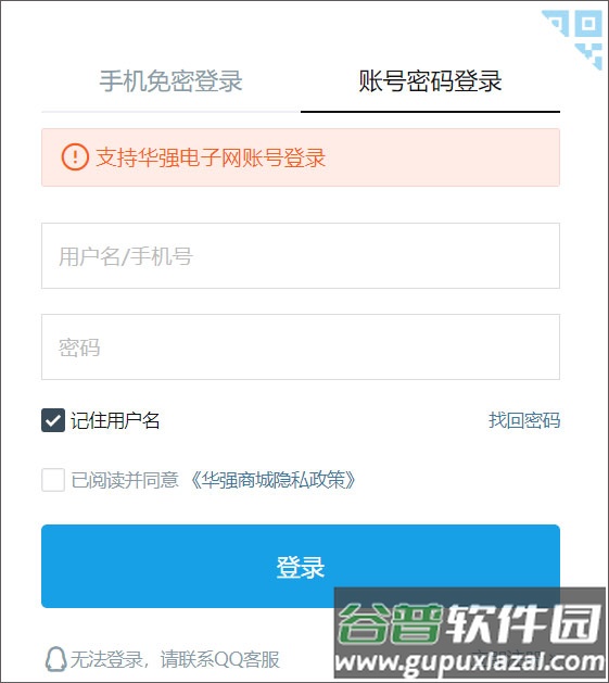 3、点击界面右上角二维码图标,使用微信扫描关注“华强商城”公众号完成登录。