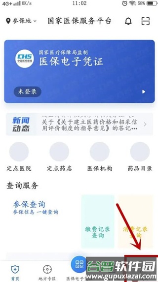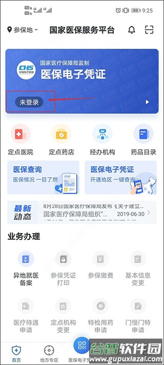 第一步:在手机上下载“国家医保服务平台”App,打开首页点击“登录”入口。